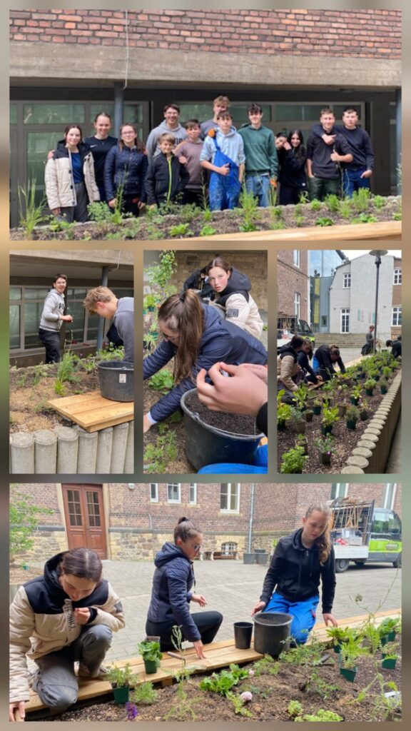 Unser Schulzentrum wird grüner und gemütlicher! Unter Anleitung des ansässigen Unternehmens Natürlich Grün wurden im vergangenen Herbst verbaute Flächen entsiegelt und in lebendige Pflanzenbeete verwandelt.